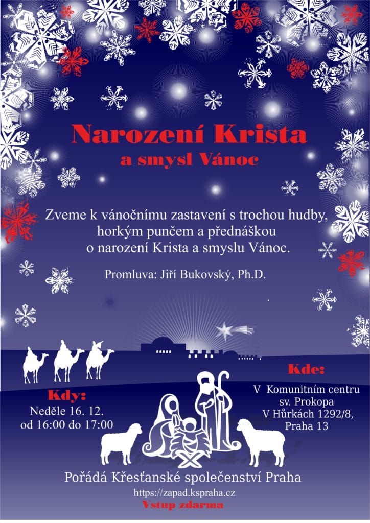 Zveme vás k vánočnímu zastavení v neděli 16. 12. Na programu bude trocha hudby, horký punč a přednáška o narození Krista a smyslu Vánoc. Zváni jsou jak pravidelní účastníci bohoslužeb, tak všichni hosté.